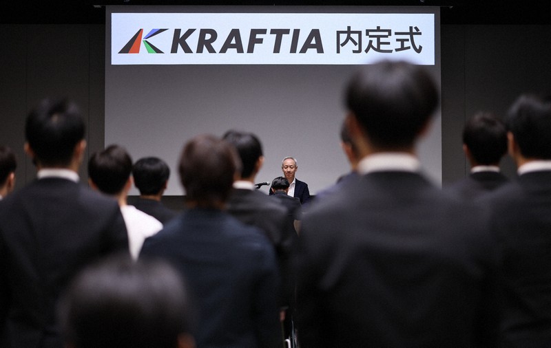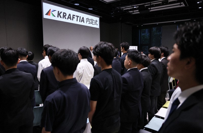 1日付で九電工から社名変更した「KRAFTIA(クラフティア)」は1日、福岡市内で2026年4月入社予定者の内定式を開いた。あいさつした安川仁上席執行役員は「新たなステージに立つ記念すべきスタートの日」と述べ、内定者に対して「約20年後に創立100年を迎えるこの会社で主役を演じてもらいたい」と期待した。