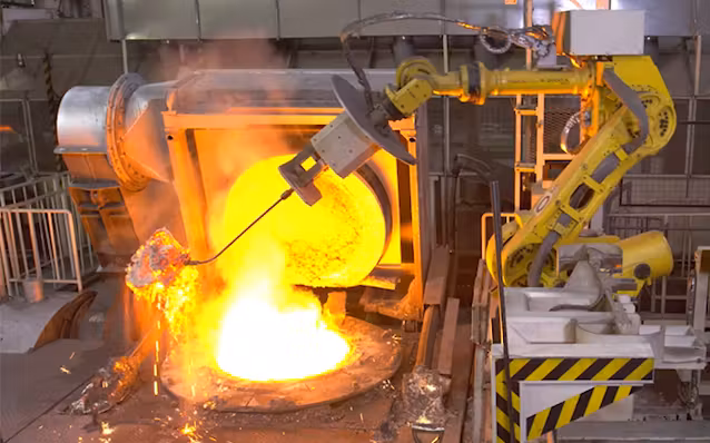 鋳造工程で鋳鉄の溶解中に発生するノロの除去は、高温の炉の近くで行う危険を伴う作業となる。スズキでは安全・安心に配慮し、2016年8月に大須賀工場(静岡県掛川市)で除去作業工程を自動化するロボット技術を導入した。