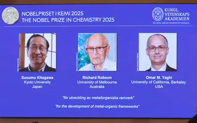 スウェーデン王立科学アカデミーは8日、2025年のノーベル化学賞を京都大学の北川進特別教授(74)ら3氏に授与すると発表した。狙った物質を内部にとじ込められる「金属有機構造体(MOF)」の研究が、脱炭素や創薬、化学など幅広い産業の発展に寄与することが評価された。