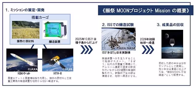 清酒「獺祭」の原材料となる米やこうじ、酵母、水と、専用の醸造装置をISSに運び、宇宙飛行士に作業してもらうことを想定する。打ち上げ後10日ほどで試験を始める予定で、2週間かけてデータを集めたり観察したりする。宇宙で発酵したもろみは早ければ年内にも地球に帰還させる予定。