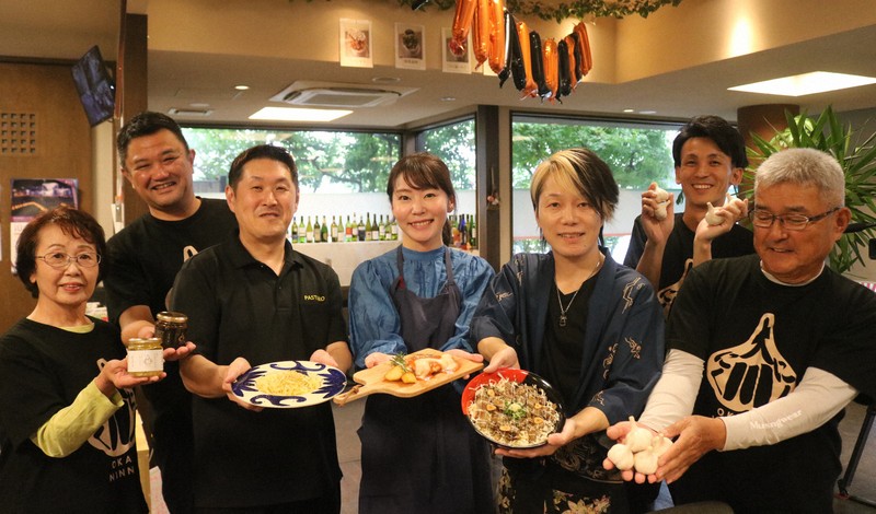 パスタ店「ぱすたろうOkawa」(同市榎津)はガーリックバターで味付けた「大川ニンニクを使ったすっぴんパスタ」、洋風居酒屋「酒処えん」(同)は鶏肉にガーリックソースを添える「ガーリックチキングリル」を完成させた。