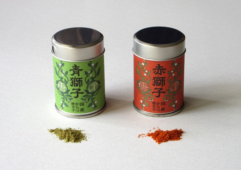 秋の大祭「唐津くんち」の曳山(ひきやま)にちなんだ一味唐辛子「赤獅子(じし)」と「青獅子」は、地元企業「クラベル・ジャパン」(唐津市和多田本村)が製造している。