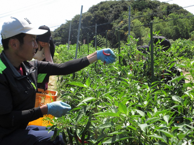 社長の平田憲市郎さん(46)は花卉(かき)農家の3代目で、18年ごろから夏場の収入源としてトウガラシを研究。流通品のほとんどが輸入頼みながら国産へのニーズは高く、耕作放棄地を購入し、栽培を始めた。