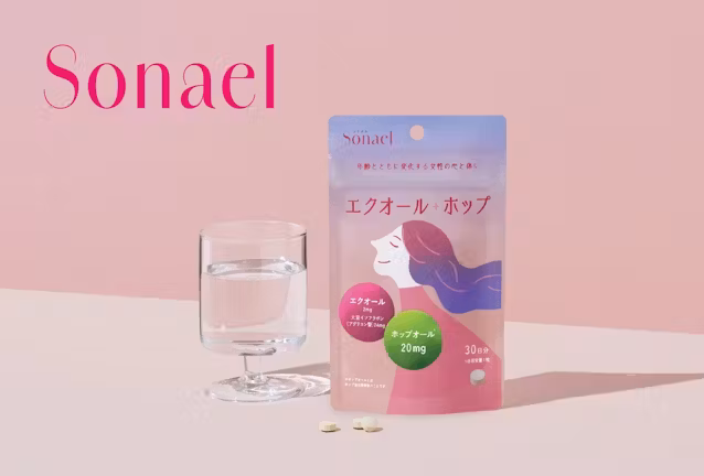 新ブランドの第1弾となるサプリは大豆由来などの3成分のほか、ビタミンB2といった美容成分も8種類配合する。価格は30粒(30回分)で4320円。ソナエルでは今後も健康食品を中心に展開する。