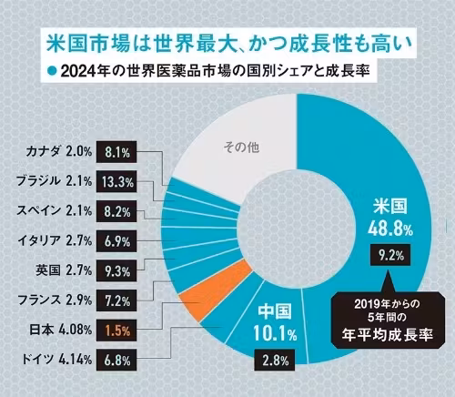 約50%という米国の売上比率は、世界医薬品市場に占める米国のシェアにほぼ重なる。しかも自由に薬価を設定できる米国市場は、欧州などに比べても収益性と成長力が高く、ここでの優勝劣敗が製薬企業の業績を大きく左右する。