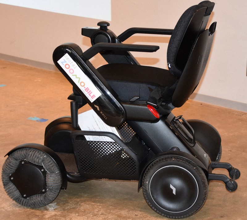 電動車は電動車いすと同じ規格で、シートベルトを着用して使う。手元のレバーを倒した方向に前後左右に動く。最大10度の傾斜の上り下りが可能。レバーから手を離せば、ブレーキが利く仕組みになっている。時速1~4キロに設定できる。5時間の充電で20キロ走行する。