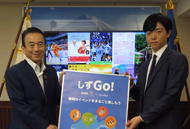 「月額費用は安めに設定しているので、気軽に使ってほしい」と鈴木康友知事。ソノリゴは東京や大阪など都市圏で自社サービスを展開している。静岡では県と組むことで割安にでき、公営施設の参加も促せたという。定価4500円のオーケストラの演奏会など1つのイベントで月額料金を超えるものもある。