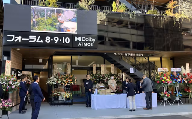 新設スクリーンの中で最大のシアター8は立体音響技術「ドルビーアトモス」を同社で初めて導入した。23日の開業式典では、招待された関係者が8分間のデモンストレーション作品で計30台のスピーカーから発する音響の没入感を体験した。