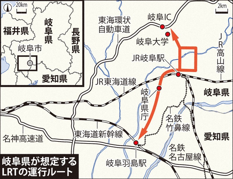県都である岐阜市では、2024年7月に県内唯一の百貨店だった高島屋が撤退するなど衰退が続く。「病院、学校、ショッピングセンターを経由すればかなりの利用客が見込まれる」。江崎知事は事業性も考慮した上で、地域活性化の起爆剤になると期待する。
