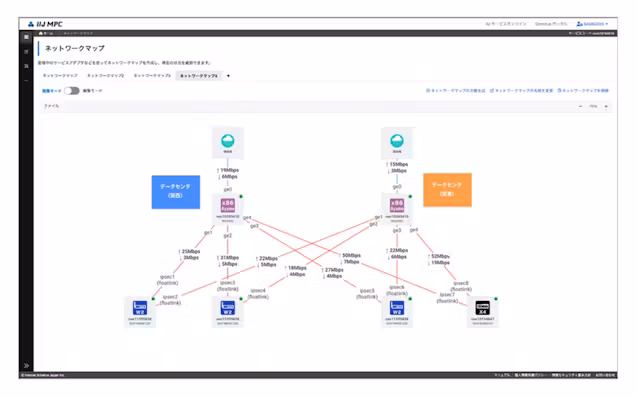 同サービスの設定情報を基に、ネットワーク構成図を自動生成・更新する新機能「ネットワークマップ」を追加した。拠点追加や削除などの変更情報を迅速・正確に反映し、拠点ごとのトラフィックやネットワーク機器の稼働状況を5分間隔で更新表示する。ネットワークの利用状況を一目で把握できる。通信量の異常や機器の稼働状況を即座に確認でき、障害発生時には影響範囲の特定や原因究明がしやすくなる。