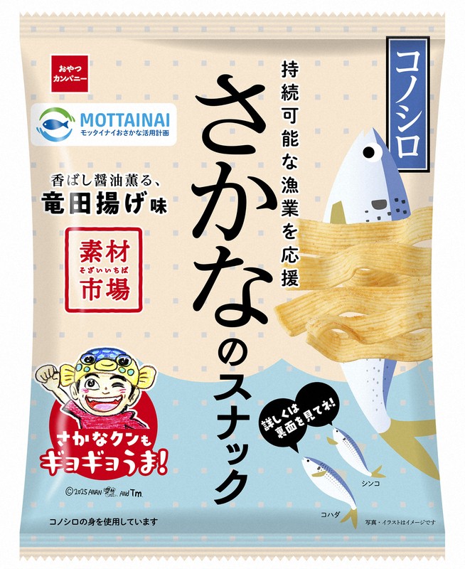 「ベビースターラーメン」で知られる「おやつカンパニー」は27日、低流通魚をスナック菓子の原料に使う「モッタイナイおさかな活用計画」をスタートさせると発表した。第1弾はすしネタでおなじみのコハダの成魚・コノシロを使った商品「素材市場さかなのスナック(香ばし醬油薫る、竜田揚げ味)」。同日から全国のコンビニやスーパーなどで発売した。
