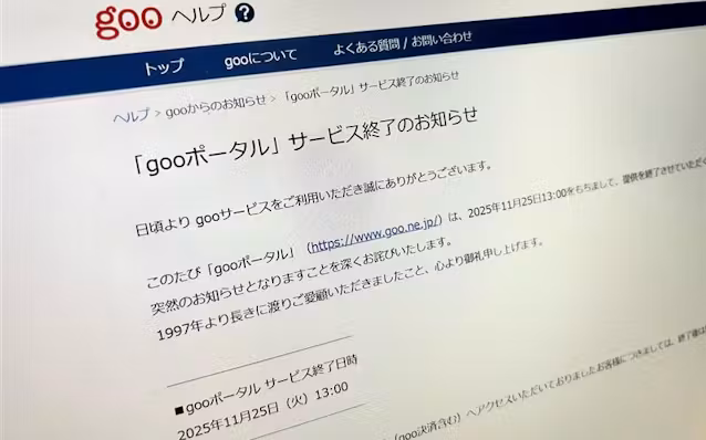 NTTドコモはポータルサイト「goo」のサービスを11月に終了すると発表した。gooは1997年に誕生し、検索機能やメール、ブログなど複数のサービスをまとめて提供してきた。ドコモが2023年にNTTレゾナントを吸収合併して以降、gooの運営を引き継ぎサービスを提供していたが、28年の歴史に幕を閉じる。