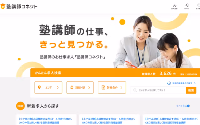 塾講師特化の求人・転職情報サイト「塾講師コネクト」を同日オープンした。まず約3600件の求人を掲載する。希望の勤務地や勤務形態など登録情報を細分化し、ミスマッチを防ぐ。掲載料は無料で、採用が決まった段階で成果報酬を得る。