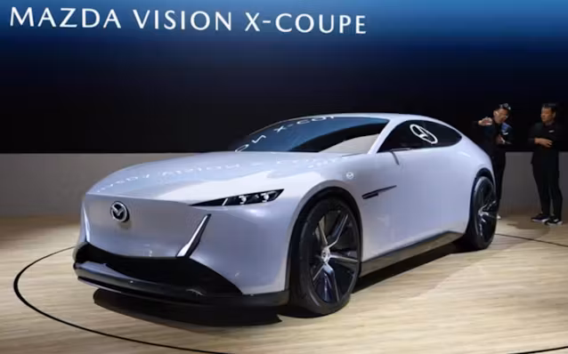 マツダは29日、「ジャパンモビリティショー2025」の報道発表で、走りながら二酸化炭素(CO2)を減らすプラグインハイブリッド車(PHV)のコンセプト車「ビジョン クロスクーペ」を公開した。排気中のCO2を回収する車載装置や微細藻類由来のバイオ燃料を活用する。強みとするエンジンを搭載しながら脱炭素を探る。