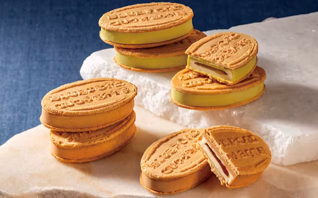 大丸松坂屋百貨店では10月8日から電子商取引(EC)で歳暮の受注を始め、店頭注文は11月1日から受け付ける。目玉の一つが「東京ばな奈」などを手掛けるグレープストーン(東京・中央)と共同開発した菓子ブランド「BLUE POND」のキャラメルミルクサンドだ。北海道の生乳で作ったキャラメルソースをホワイトショコラで包んだ。近く販売予定数量に達する見込みという。