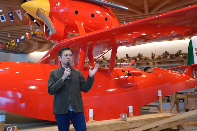 報道陣に店舗を公開した10月31日、スタジオジブリ常務の宮崎吾朗氏は「飛行艇を眺めながらの食事は楽しい体験になる。公園に遊びに来たら寄ってほしい」と話した。店内は赤を基調とし、天井は旗で飾った。