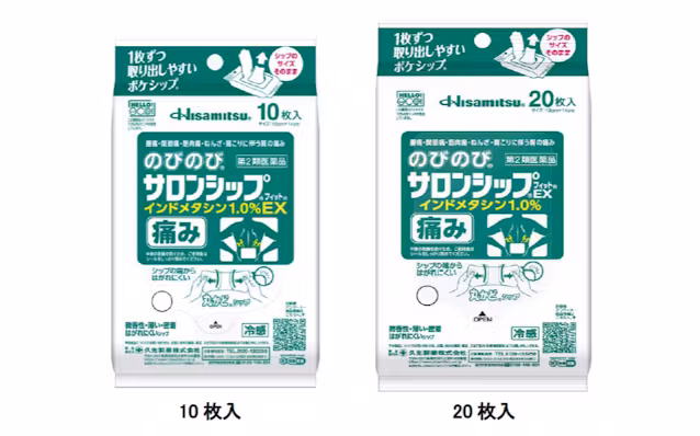 久光製薬は、第2類医薬品の経皮鎮痛消炎シップ剤の新商品を発売したと発表した。有効成分にインドメタシン1.0%とℓ-メントール1.2%を配合したダブル鎮痛処方で、腰痛や関節痛、肩こりの痛みなどに効果を発揮する。希望小売価格は10枚入りが1320円、20枚入りが2200円。全国の薬局、薬店、ドラッグストアで販売する。