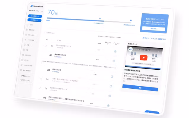 セキュアナビは2020年に設立した。企業の情報セキュリティー体制が整備されていることを認証する「情報セキュリティマネジメントシステム(ISMS)認証」の取得や維持を支援するサービス「SecureNavi」などを提供する。同サービスは1200社以上への導入実績がある。
