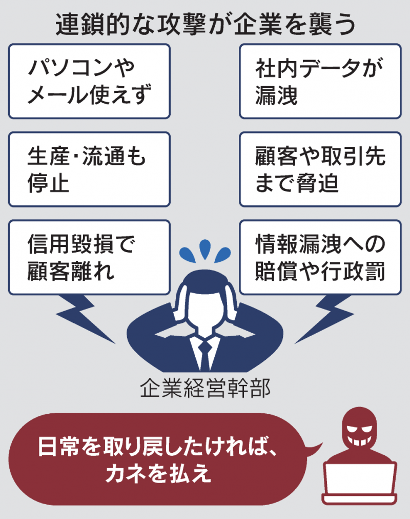 - ・ランサムウエアの脅威 DXで被害増幅、災害級の備えを