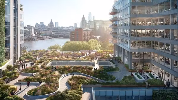 プロジェクトの目玉は、敷地の40%を公開空地として一般開放することだ。そして地元ランベス区や国立劇場「ロイヤル・ナショナル・シアター」と連携する。地下1階から地上2階には手ごろな賃料で入居できるアフォーダブルオフィス「London Studios」を設ける。将来有望なクリエーターやアーティストに最大9割引きの賃料で貸し出し、文化、芸術の新たな発信拠点にしたい考えだ。