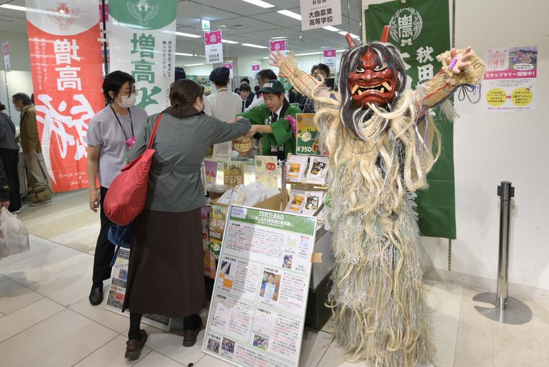 北海道岩見沢農業高の伊藤夢花さん(3年)は「岩農」ラベルのついたベーコンやソーセージを勧めながら、「自分たちが作ったことのない商品も多いので勉強になります」と他校の製品の売れ行きが気になる様子。食品科学科の大杉佳奈教諭は「かなり安い値段にしたので、2日間続けて買いに来るお客さんもいて、生徒は手応えを感じています」と話し、手作りのポップで商品をPRしていた。地元の食材を使ったレトルトカレー「さらのうキーマ」を販売した北海道更別(さらべつ)農業高は、試食を始めたところ売れ行きが伸びた。大川泰生さん(1年)は「賞味期限が2年間なので災害時の非常食にもなります」とアピールしていた。地下街に立ち寄る外国人もいて、ジャムを試食販売していた北海道士幌高の村上育志さん(2年)は、英語を交えて接客していた。京都府立須知(しゅうち)高校は、牛乳と乳酸菌、砂糖以外は無添加のヨーグルトや、校内の竹林で収穫したタケノコを使った味付けメンマをショーケースに並べたところ、安さも手伝って閉店を待たずに完売した。