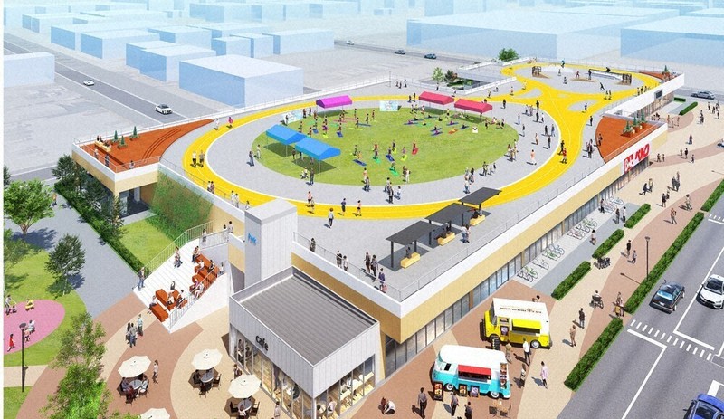 このため、都市公園法に基づく「立体都市公園制度」も活用することにした。この制度では、民間施設の屋上を公園にすれば、下の施設は面積制限の適用外になる。同様の方式で公園にスーパーを造るのは、大分県別府市の春木川公園(24年12月オープン)に続き全国で2例目だという。