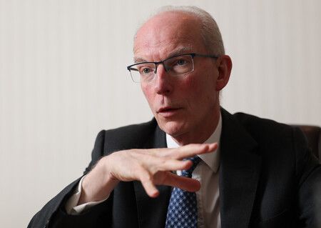 インタビューに応じるQBEインシュアランス・グループのホートン最高経営責任者(CEO)=13日午前、東京都千代田区