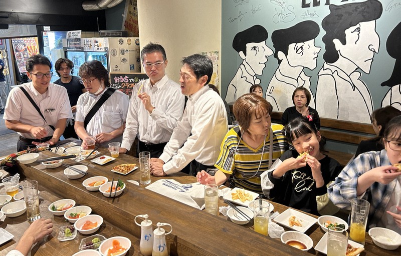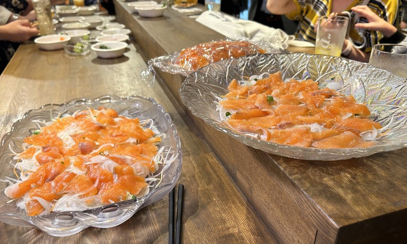 小倉北区の飲食店でお披露目食事会を開催。約140人がサーモンをふんだんに使ったカルパッチョやピザ、刺し身を味わった。地元の専門店と共同開発したピザは、魚類と相性の良いバジルソースを使った「ジェノベーゼ」として提供。岩塩や黒コショウがアクセントを生み、カットレモンを添えた。訪れた人は「あっさりしていて何枚もいける」「予想以上のおいしさ」などとビールを片手に舌鼓を打った。