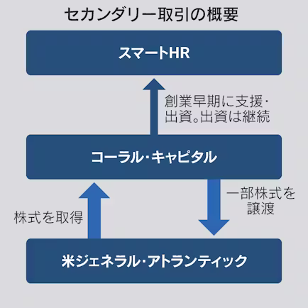 独立系ベンチャーキャピタル(VC)のコーラル・キャピタルは18日、人事労務ソフトウエアを手がける新興企業のSmartHR(スマートHR、東京・港)の株式の一部を146億円で米投資会社に譲渡したと発表した。投資家間で売買する「セカンダリー(2次流通)」を用いた取引で、日本では最大の規模となる。海外で主流のセカンダリーが日本で広がれば、新興企業が柔軟な資本政策をとれるようになる。