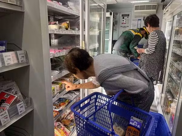 北海道南西部、渡島半島から船で2時間の日本海上に浮かぶ奥尻島。人口わずか2000人ほどの島に1台の移動販売車が走る。「いつも楽しいサツドラ、いつも近くにサツドラ」――。スピーカーから楽しげなテーマソングが流れると、1人、また1人と住民が集まってくる。