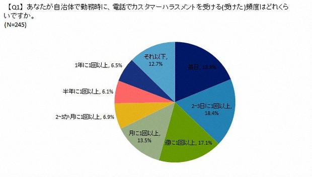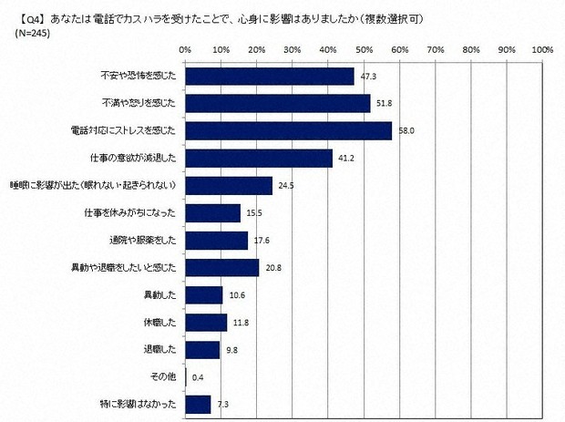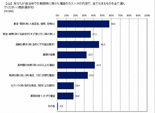 調査は、自治体か民間企業で働いていて、電話でのカスハラを経験した男女計967人(自治体245人、民間企業722人)を対象にインターネット上でアンケートをとった。