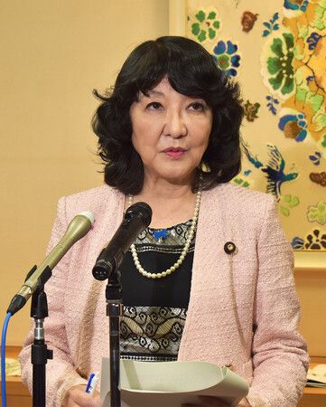 記者団の取材に応じる片山さつき財務相=19日午後、東京都港区