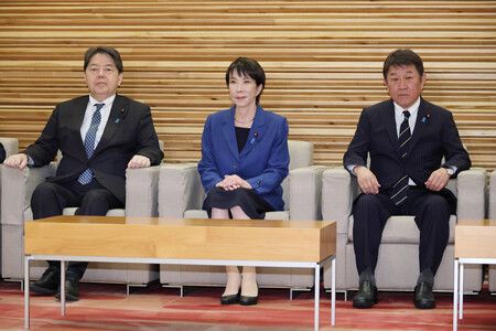 臨時閣議に臨む高市早苗首相(中央)=21日午後、首相官邸
