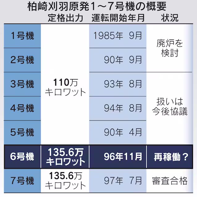 県議会も再稼働に同意すれば、知事は再稼働容認を求める国からの要請に回答する見通し。県議会の最終日は12月22日であり、年内に地元同意が完了する可能性がある。7号機はテロ対策施設の完成遅れで当面は動かせない。6号機が福島事故後、東電の最初の再稼働となる見通しだ。