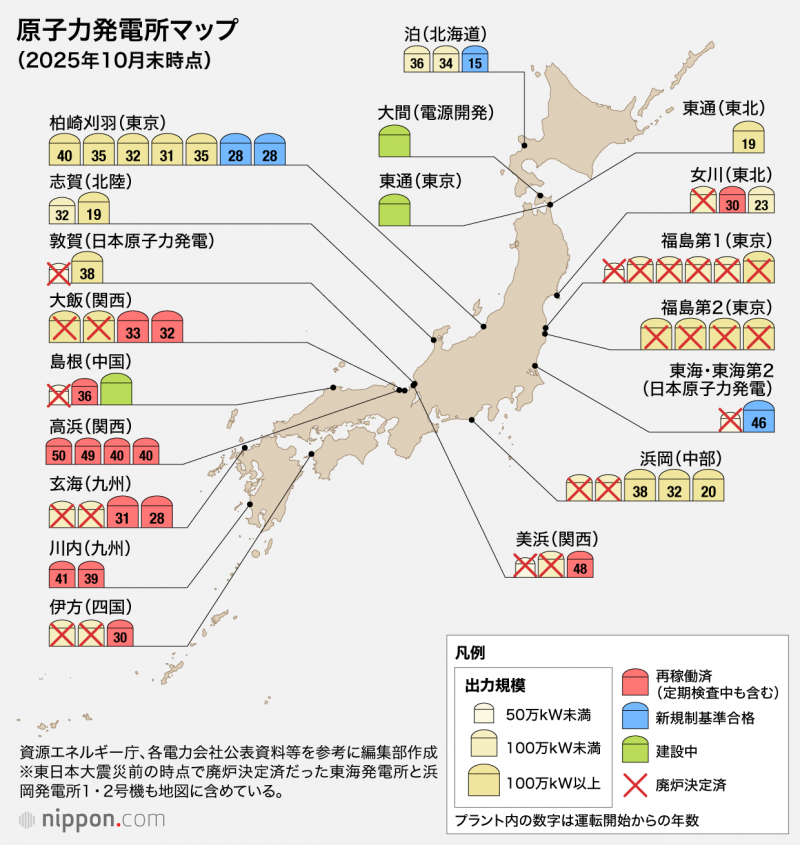 東日本大震災以降、再稼働した原発は建設中を含む36基のうち14基にとどまり、東日本では東北電力女川原発2号機(宮城県)のみ。