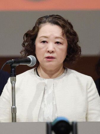 連合の中央委員会であいさつする芳野友子会長=28日午前、千葉県浦安市