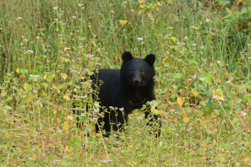 餌を求めて民家近くのソバ畑に出没したツキノワグマ(秋田県北秋田市、撮影=益田光)