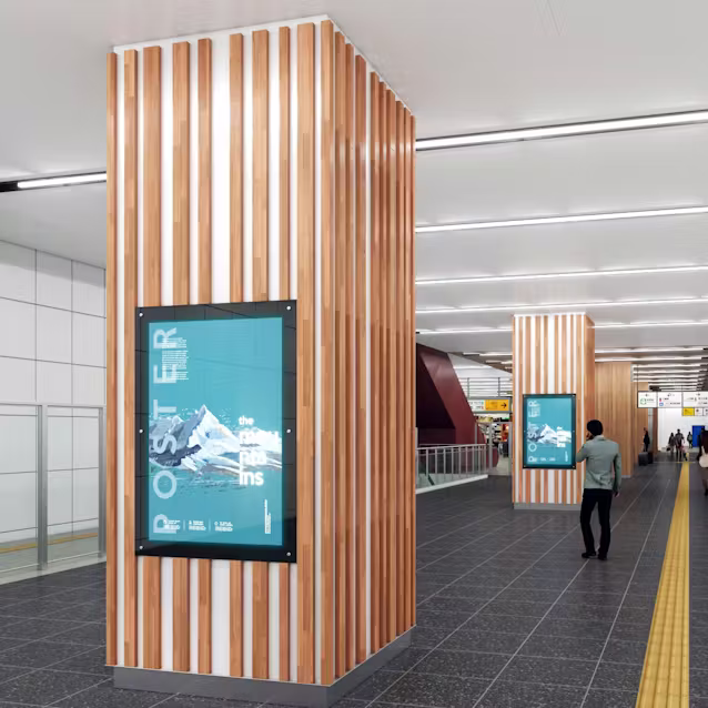 盛岡駅では2階コンコースの柱5本の表面を飾る。被災木を用いたことを銘板で示す。使用量は4立方メートルで26年度中の工事完成を目指す。