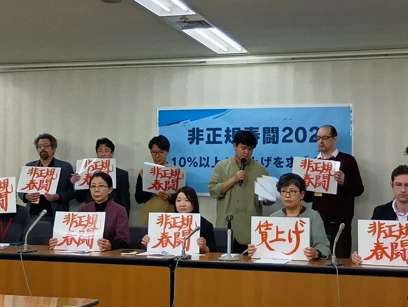 非正規労働者の賃上げに取り組んでいる個人加盟の労働組合などで作る「非正規春闘実行委員会」は2日、東京都千代田区の厚生労働省で記者会見を開き、10%以上の賃上げ(ベースアップ)などを求めるとした2026年の春闘方針を公表した。実行委では「最低賃金の大きな引き上げも実質賃金の引き上げにはつながっていない」として、春闘で生活できる賃金を求めるとしている。また、「誰でも、1人でも参加できる春闘を目指す」と非正規春闘への参加を呼びかけた。