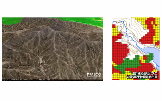 空間情報技術で取得した樹種・立木密度などの森林資源データや、衛星画像から解析する森林の状態、3次元(3D)地形情報などの詳細なデータを基に評価する。自治体や林業関係者による防災対策や森林管理の方針検討に活用可能な資料にするため、結果は視覚的に認識できるようにする。