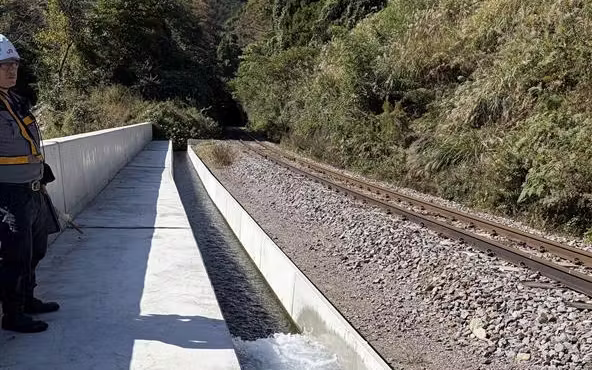 JR九州は12月から鉄道のトンネルからの湧き水を活用した小水力発電を始めた。久大本線野矢―由布院間の水分トンネル(大分県由布市)付近に導水管を通し、流れ込んだ湧き水を発電機が回る動力にする。同社が水力発電に乗り出すのは初めて。発電した電力は九州電力に販売する。