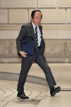 金融政策決定会合のため、日銀本店に入る植田和男総裁=18日午前、東京都中央区(代表撮影)