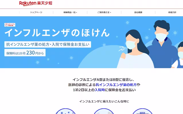 保険期間中にインフルエンザにかかり、医師が抗インフルエンザ薬を処方した場合に治療保険金を受け取ることができる。20歳以上の人の場合、最も安価なプランで保険料は月230円、保険金は1回あたり3000円となる。入院した場合は入院保険金として支払額が増える。