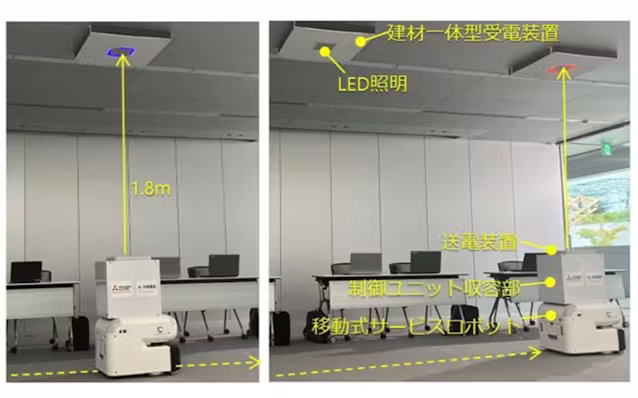両社で開発したマイクロ波無線給電システム「T-iPower Beam」の有効性を、大成建設の技術センター(横浜市)で検証した。三菱電機が開発した最大出力200ワット級のマイクロ波無線送電装置と、大成建設が開発した建材一体型の受電装置を組み合わせた。受電装置には、受電できなかった電力の漏洩を防ぐ電波吸収体を建築仕上げ材に組み込んだ。