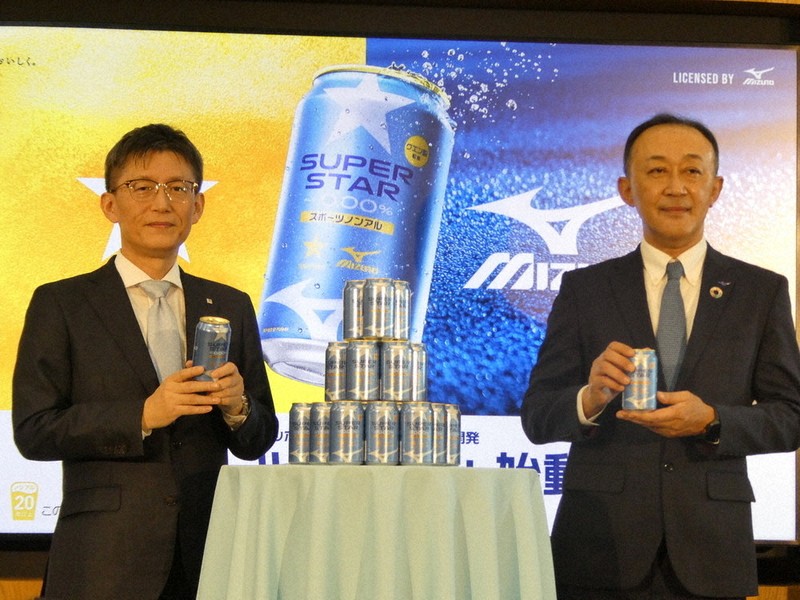 今回サッポロが声をかけ、ミズノ社員らに聞き取りするなどして開発を進めた。サッポロビールの坂下聡一上席執行役員は「ホップのさわやかさをイメージして味づくりをした」とアピールした。