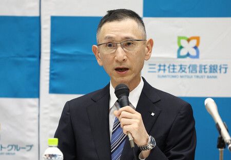 記者会見する三井住友信託銀行の米山学朋次期社長=23日午後、東京都千代田区
