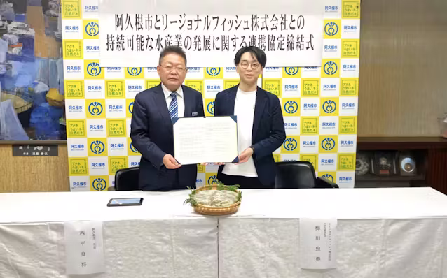 京都大学発スタートアップのリージョナルフィッシュ(京都市)は24日、鹿児島県阿久根市と持続可能な水産業の発展のための連携協定を結んだ。同社は2024年、市から栽培漁業センターの無償譲渡を受けてバナメイエビの稚エビを生産しており、水産分野での協力を拡大する。