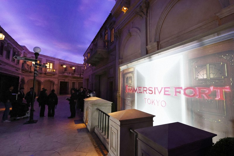 イマーシブ・フォート東京は小説やアニメの世界を映像や俳優で再現し、来場者は登場人物になり切る体験ができるのが特長だった。(共同)