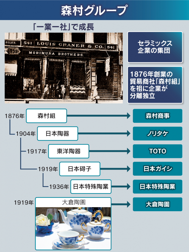 ノリタケやTOTO、日本ガイシ、日本特殊陶業。これらの企業の源流は1876年創業の貿易商社、森村組に至ります。業種は異なり、資本関係もほとんど無いまま成長してきた異形のセラミックス企業の集団「森村グループ」。最近は燃料電池など次世代分野で連携の動きも出てきました。150年を迎える企業集団の今と未来の姿を追いました。