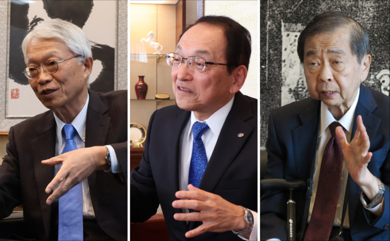 左からTOTOの清田徳明会長、ノリタケの加藤博会長、森村商事の森村裕介会長
